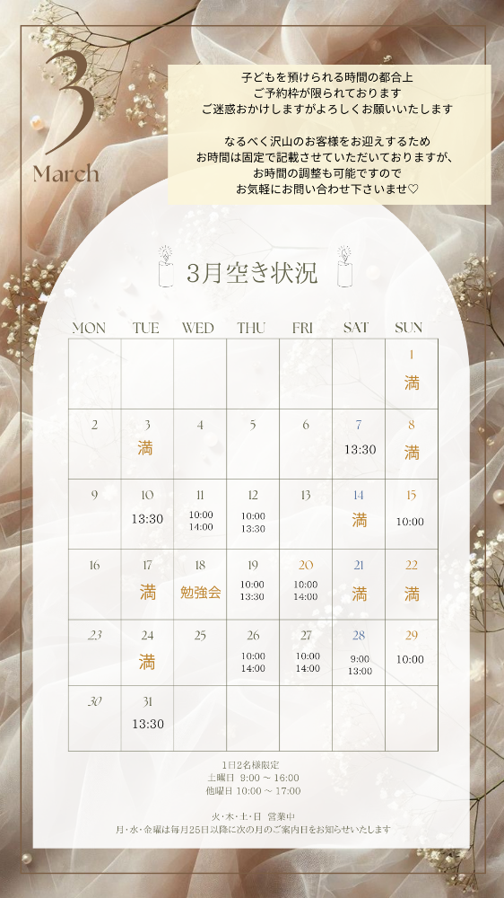 3月最新のご予約