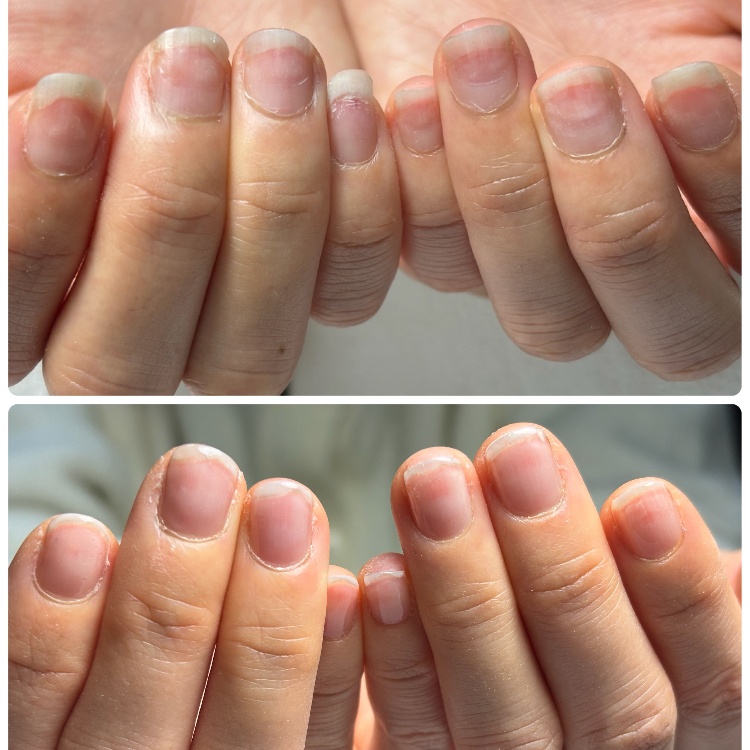 約2ヶ月間の自爪育成の経過を